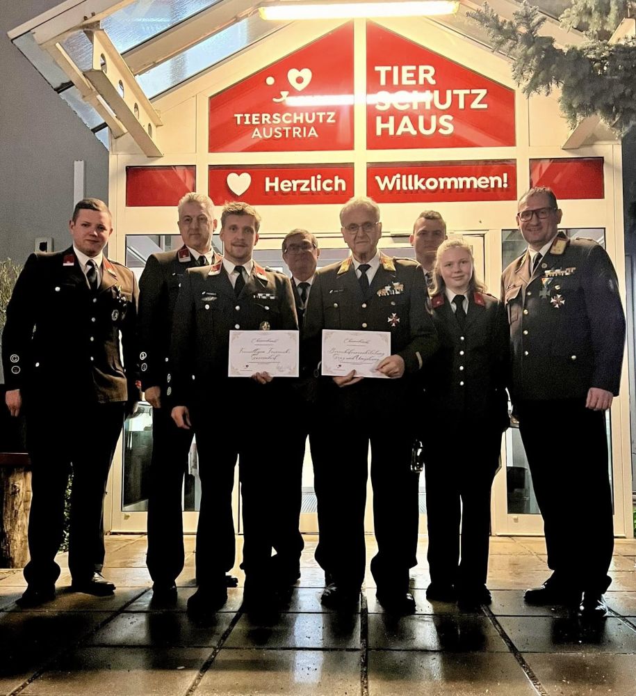 Am Dienstag, dem 02.12.2025, wurden der Bereichsfeuerwehrverband Graz-Umgebung und die Freiwillige Feuerwehr Gössendorf für ihre Verdienste um in Not geratene Tiere vom Tierschutz Austria mit dem Tierschutzabzeichen ausgezeichnet.