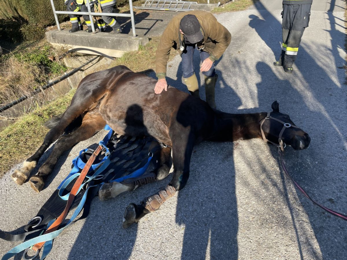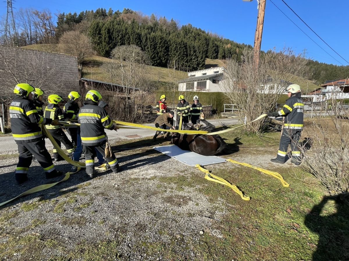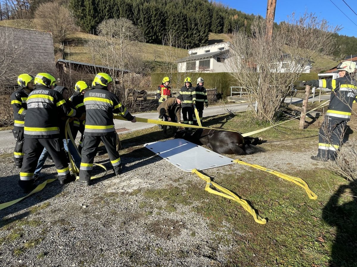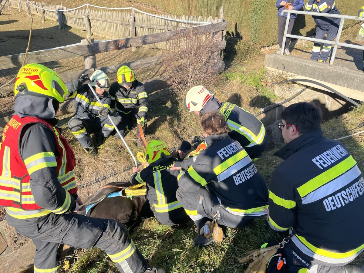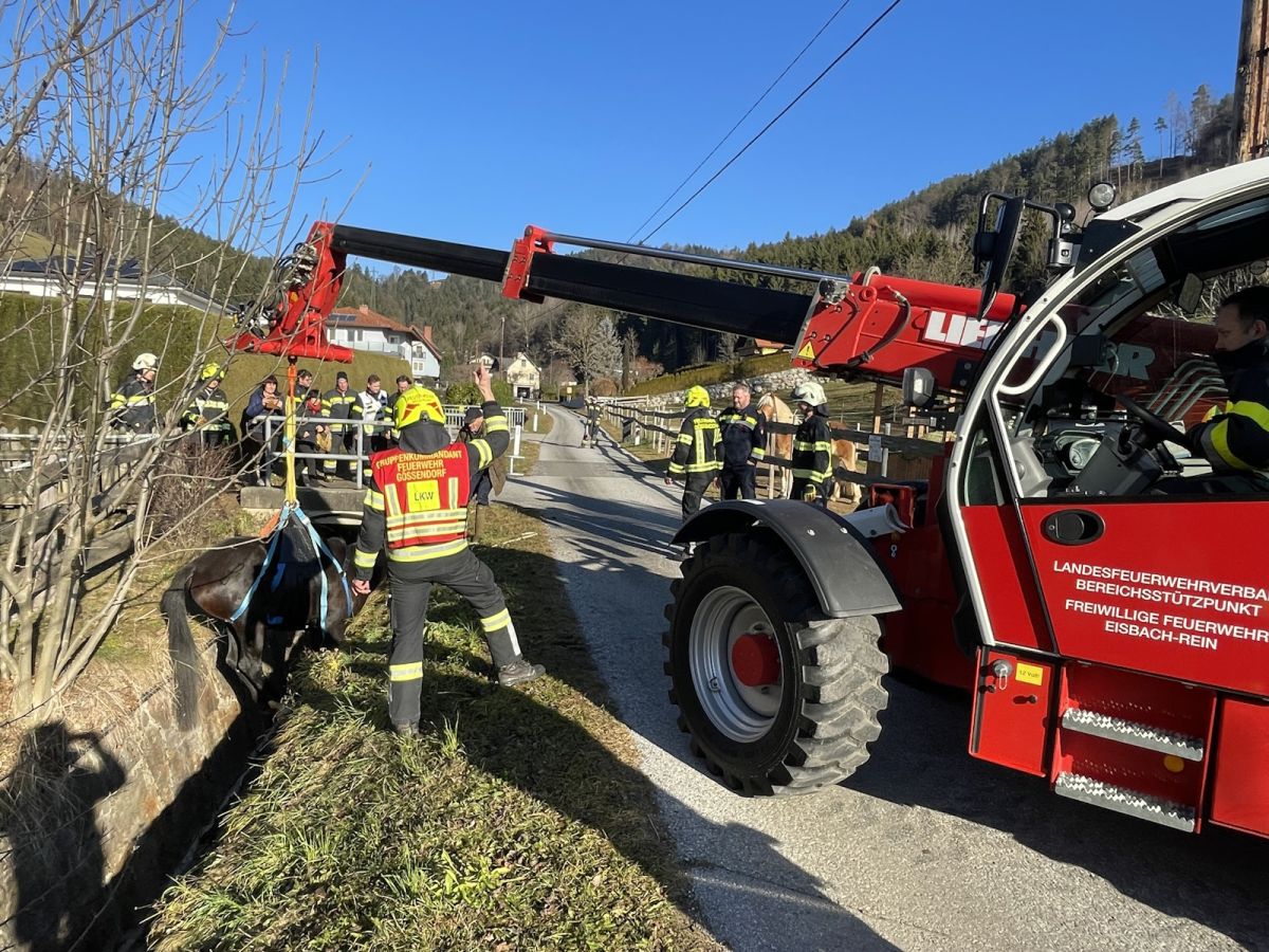 Im Ortsteil Zitoll der Gemeinde Deutschfeistritz war ein Pferd in eine Wildbachverbauung gestürzt und konnte sich aus eigener Kraft nicht mehr befreien.