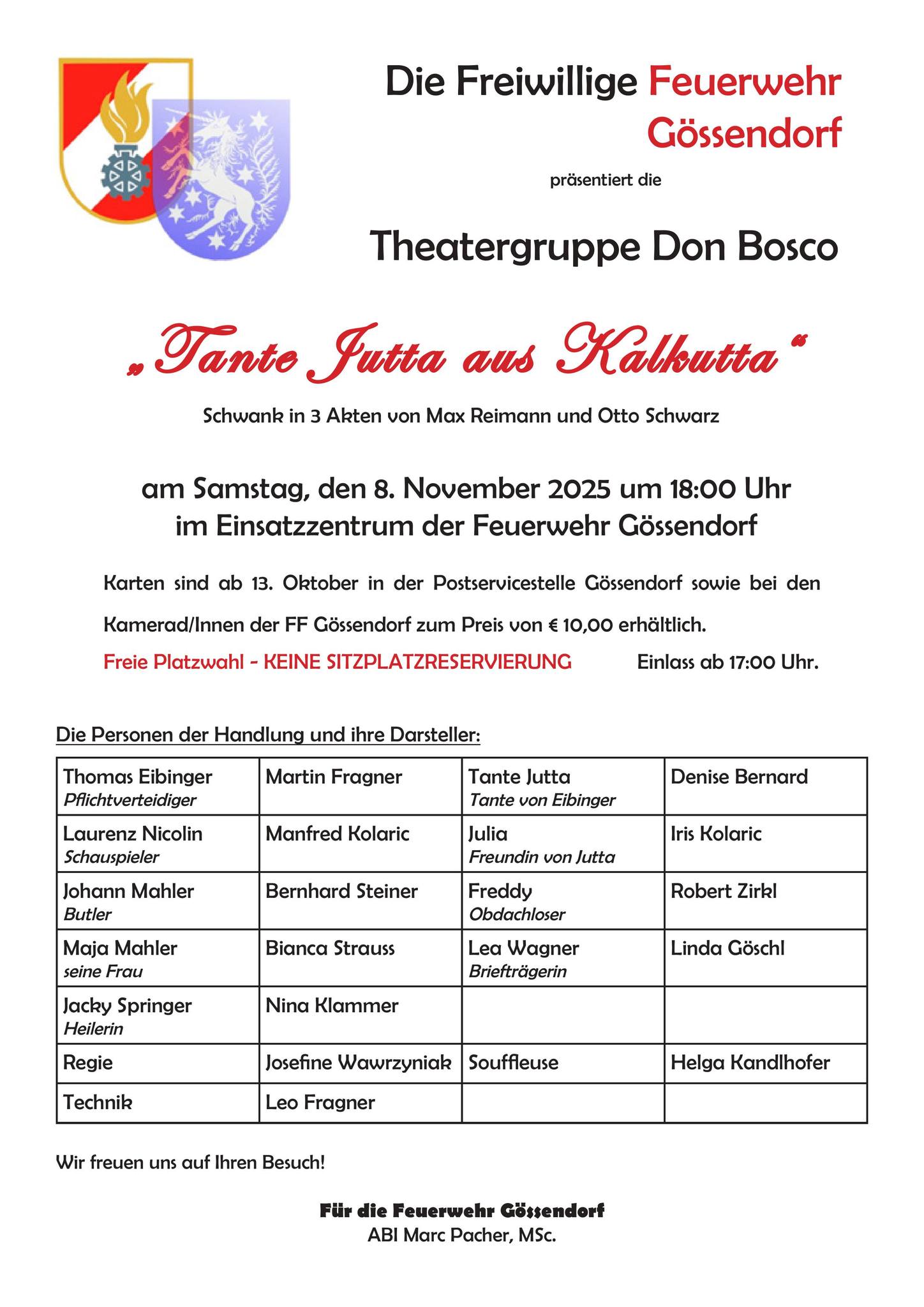 Am Samstag, 8. November 2025, lädt die FF Gössendorf wieder herzlich zum unterhaltsamen Theaterabend ein!