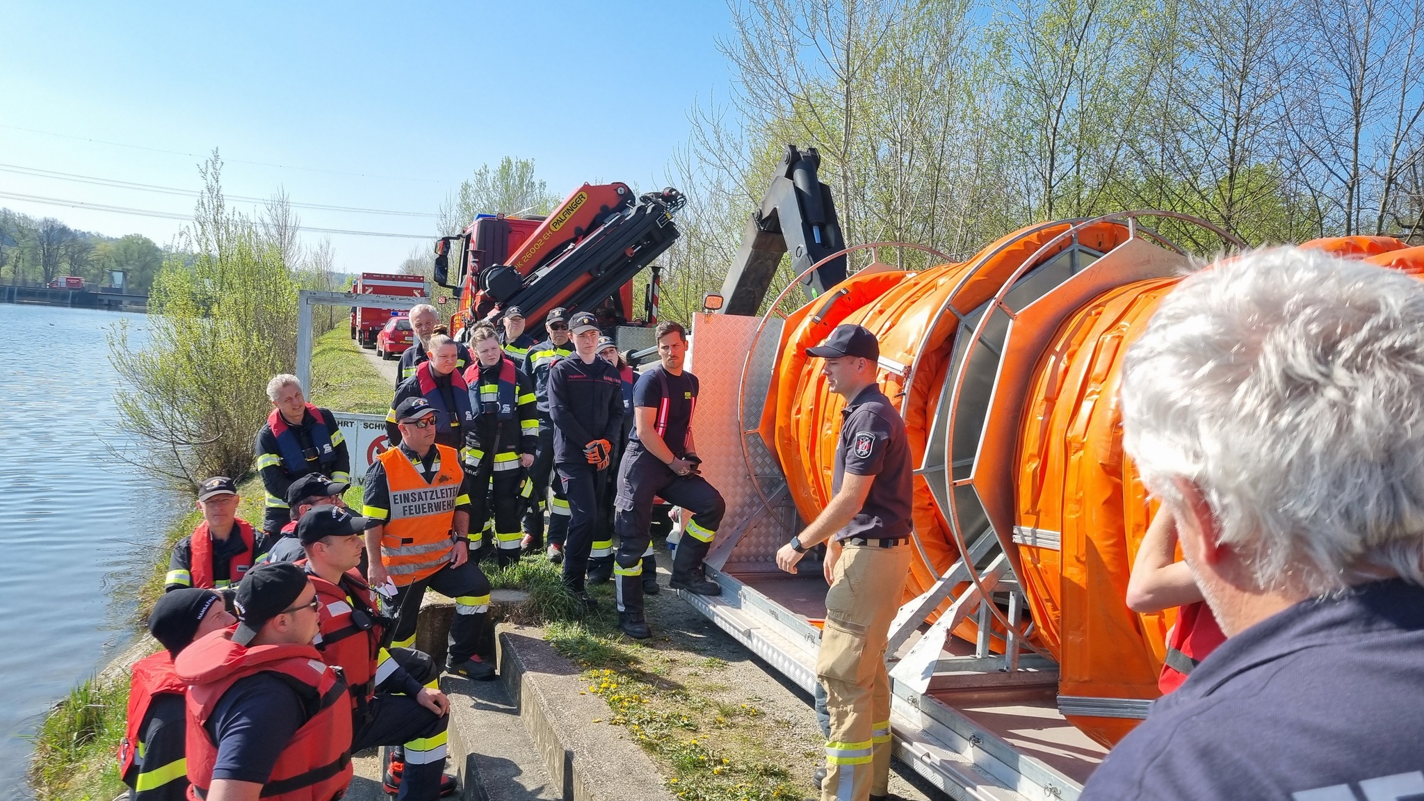 Im Verlauf der Übung wurde außerdem ein mobiler Ölabscheider aufgebaut, und die eingesetzte Gerätschaft für den Ölwehreinsatz näher erläutert.
